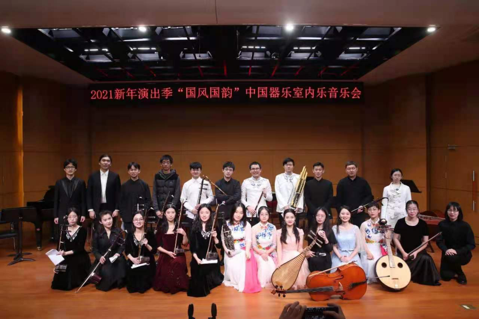 为了让更多的同学了解民族音乐,我们每年都为全校师生准备了两场国风国韵音乐会,且面向全校招收热爱民乐的同学参与专业的乐团排练,我们将会砥砺前行,共同坚守我们的目标。