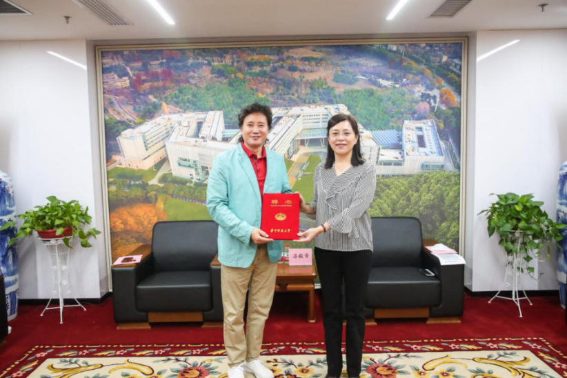 湛毅青副校长向戴玉强教授颁发华中科技大学兼职教授聘书。