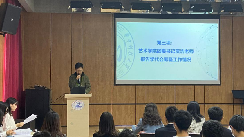10月29日,世界杯官方网页版第三次学生代表大会在西八楼403召开。艺术学院党委副书记周蕾、团委书记贾浩以及学院全体同学参加了本次大会。