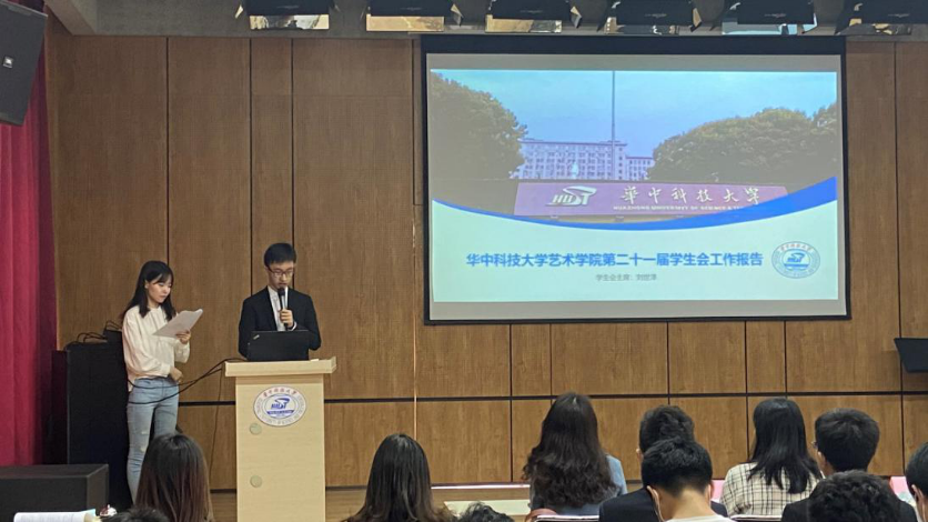 院学生会主席刘世泽同学代表艺术学院第二十一届学生会做工作报告