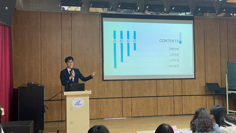 接下来,根据抽签顺序,五名主席团成员候选人依次进行竞选演讲并回答学生代表们的提问,展现了个人魅力,表达了对学生会工作的热爱和期待。通过全体学生代表微信投票,学院新一届学生会主席团成员为:向远航、于祯奇、张可。