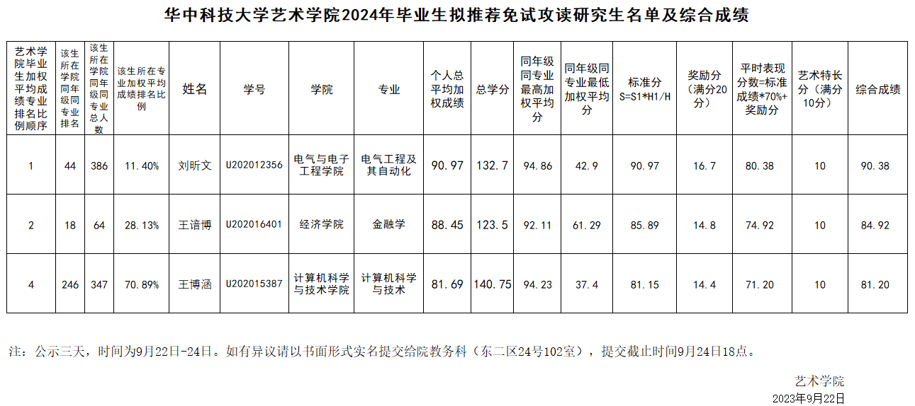 如有异议,请于2023年9月24日18点前以书面形式实名向学院教务科、学生工作组反映。