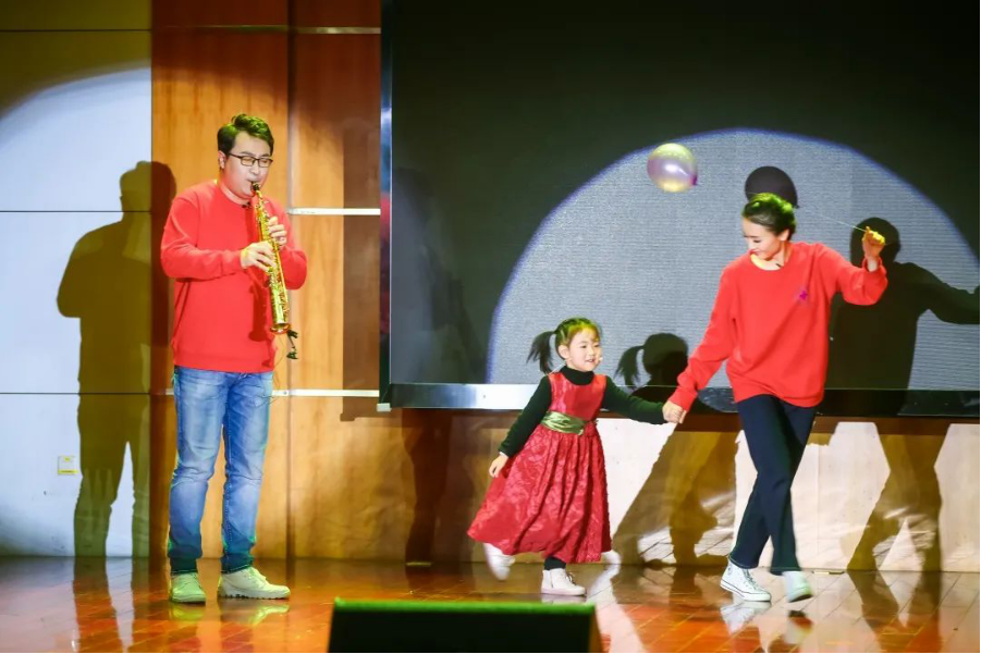 情景表演《黎明前的低吟》由马一鸣老师、曾希卓老师以及特邀嘉宾华中科技大学附属幼儿园的杜佳漫共同表演,重现了大武汉浴火重生后的美好与静谧。