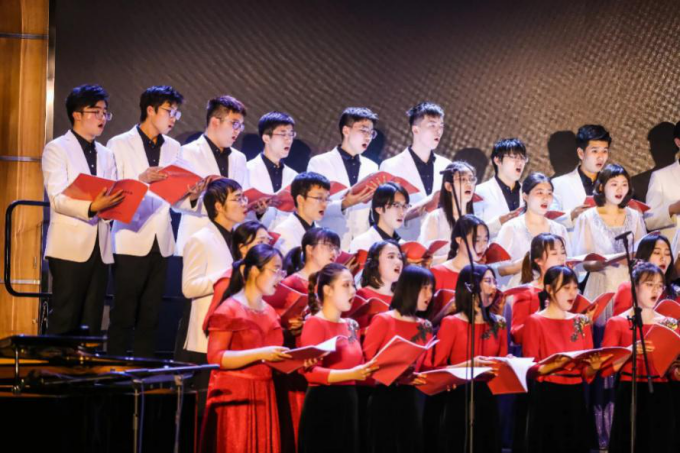 华中科技大学高水平艺术团合唱团,各8个试点院系0基础学生组建的3个混声团以及少数民族石榴籽合唱团一同用音乐向师生传递沉沉爱意与坚定信念,在歌声中,铭刻旧岁,展望新年!