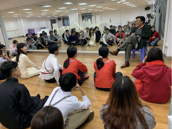 接下来,梁老师着重强调了话剧艺术的核心——演员。话剧是姓“话”的,这意味着演员需要对自我的台词功底更加重视,讲好台词是话剧演员的基本技术,能否用台词传达出话剧的感情主旨是话剧是否成功的重要标准。这让在场刚刚结束曹禺诞辰110周年纪念专场演出的戏剧团成员们深受启发。