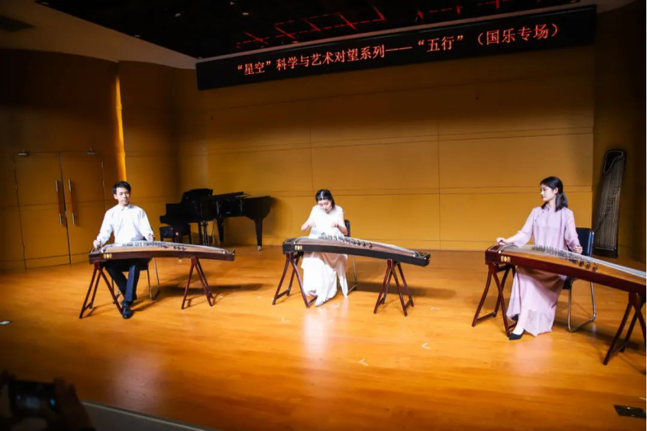 11月25日晚,由世界杯官方网页版主办的“星空”科学与艺术对望系列音乐会——“五行”国乐专场在东十二F302音乐智慧教室落下帷幕。